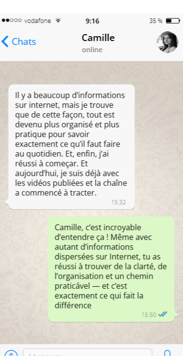 mais honnêtement, on est convaincus que tu ne vas même pas penser à demander un remboursement — parce qu’on sait à quel point ces 7 jours d’exécution peuvent transformer ta manière de créer sur Youtube.